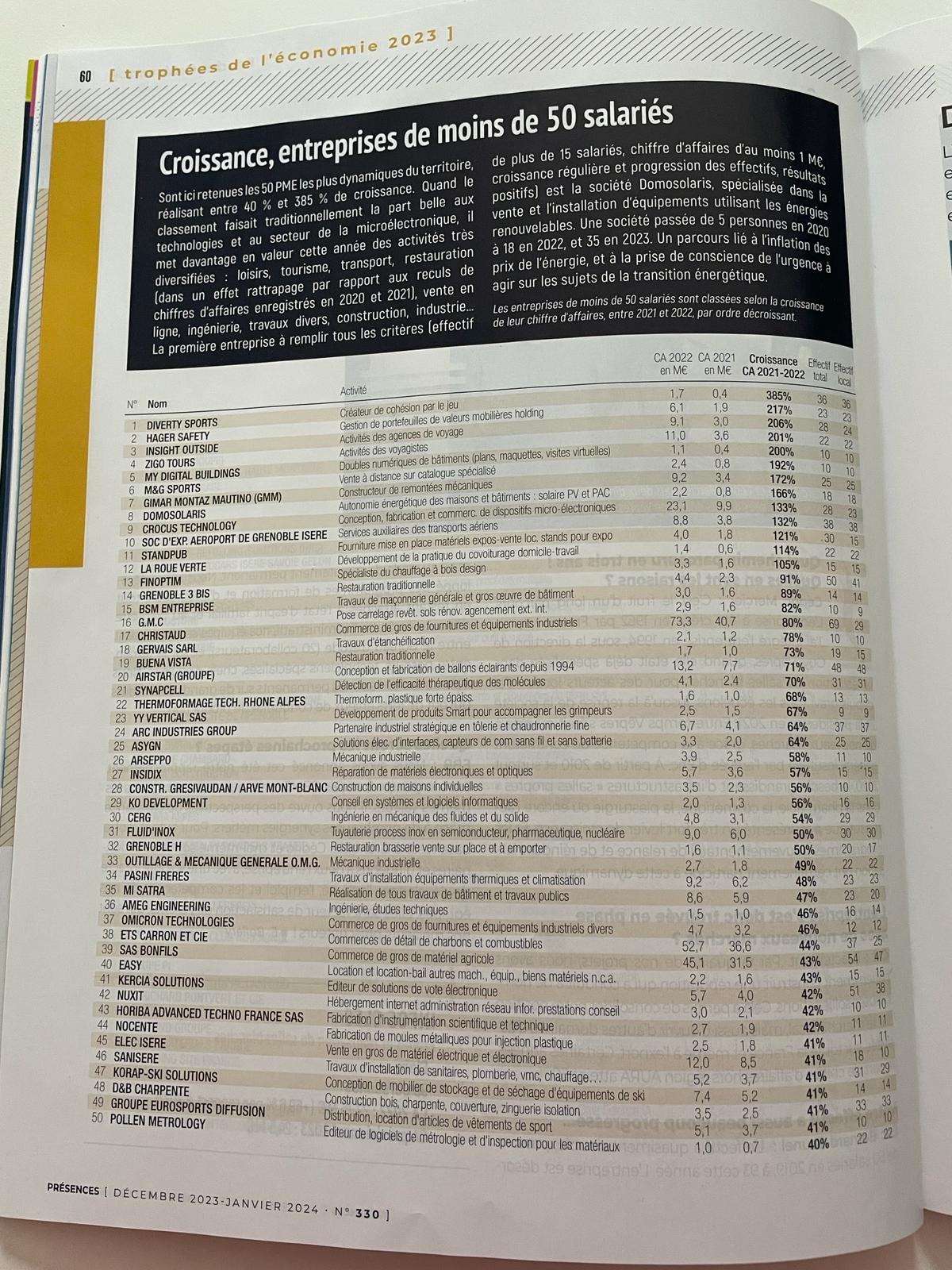 Nous sommes également 34ème PME exportatrice selon un autre classement du même magazine.