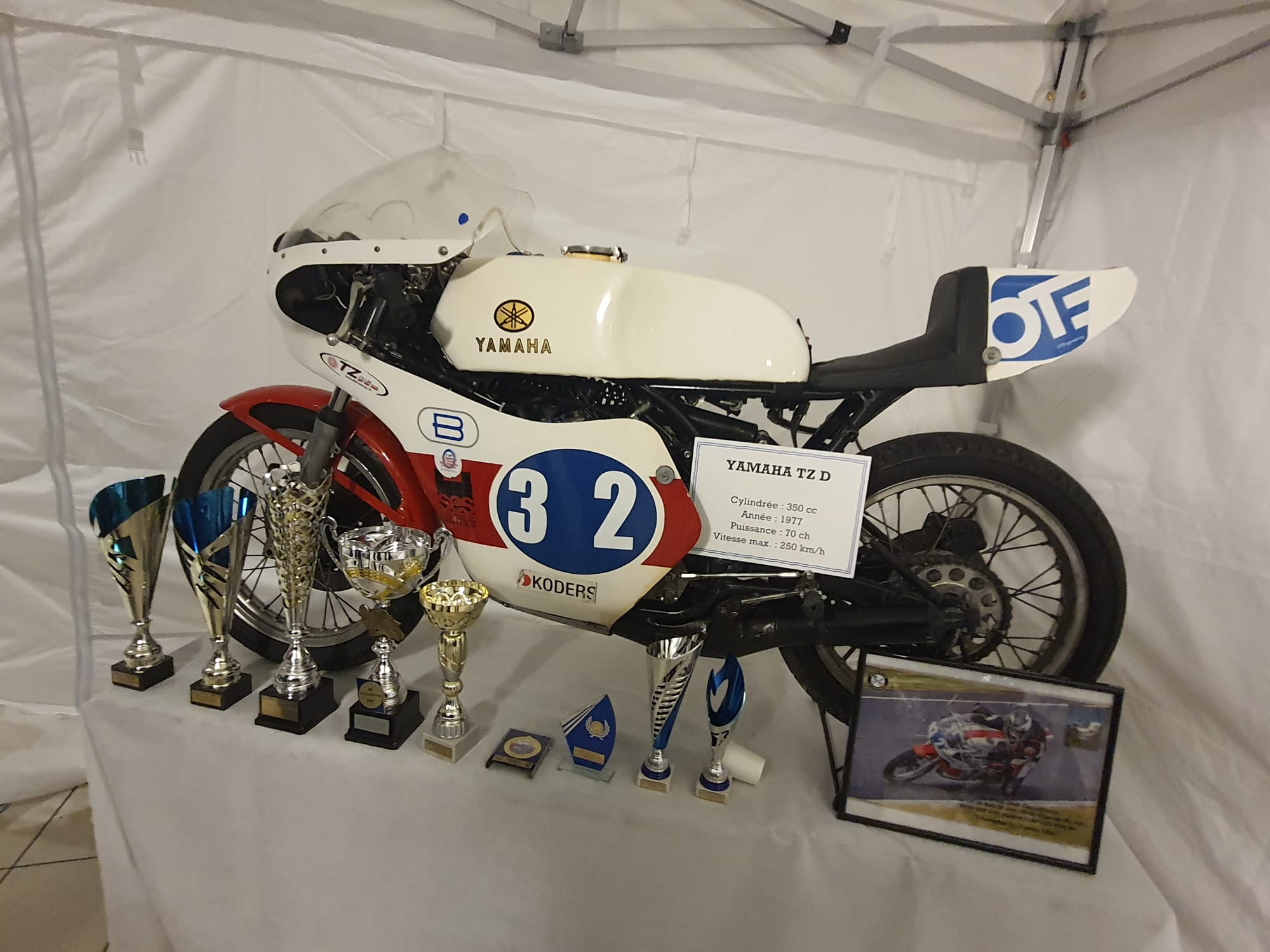 Elle est pas belle cette moto ? Il s'agit de vrai motos de compétition autrefois utilisées en Grand Prix. Ce sont de 250cc, deux temps.